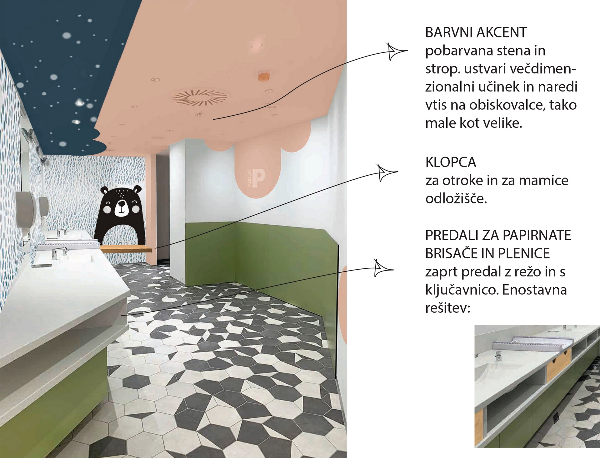 Notranji dizajn previjalnice in dojilnice v najsodobnejšem nakupovalnem centru na svetu *ALEJA v Ljubljani*